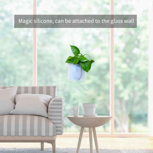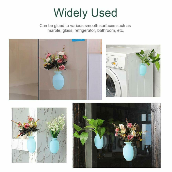 Wall Mounted Flower Pot Magic Silicone Flower Vase, Removable Fridge Stick on Vase Self-Adhesive, Air Plant Holder Hydroponics Planter Decorative Wall Vase