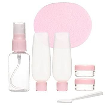3 Bottle 2 Container. 1 Sponge Cosmetic Travel kit (Pink) |