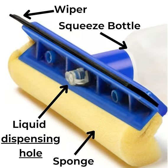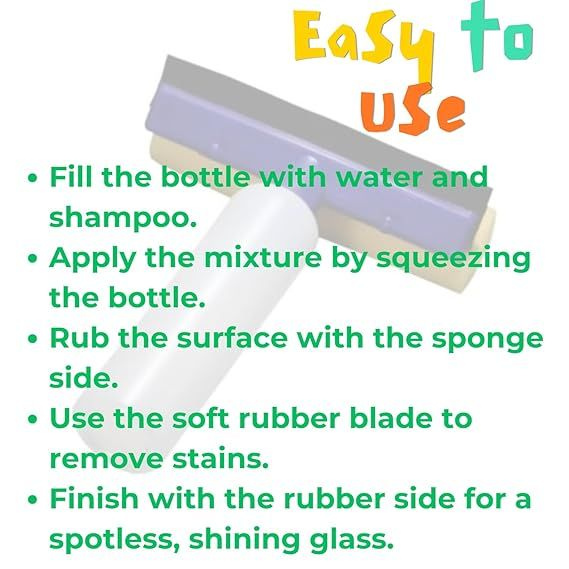 Glass Wiper Car Window Cleaner is an innovative 3-in-1 tool designed for versatile cleaning. This mini wiper is perfect for a wide range of surfaces, including car bodies, windows, fiberglass, tiles, vans, home, kitchen, and caravans. It significantly improves visibility for all vehicles in any weather, working efficiently on windows, windshields, and mirrors. The anti-slip bottle handle offers a comfortable grip, making it easier and faster to clean your car, home, and office. To use, simply fill the bottle with water and shampoo, mix thoroughly, and squeeze the bottle to apply the shampoo-based water onto the glass. Rub the surface with the sponge side, use the soft rubber blade to remove stains, then clean the glass with the special lint-free sponge, and finally wipe the water with the rubber side for a clean and shining glass. This all-in-one design ensures a spotless, streak-free finish every time.