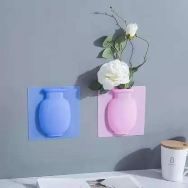 Wall Mounted Flower Pot Magic Silicone Flower Vase, Removable Fridge Stick on Vase Self-Adhesive, Air Plant Holder Hydroponics Planter Decorative Wall Vase
